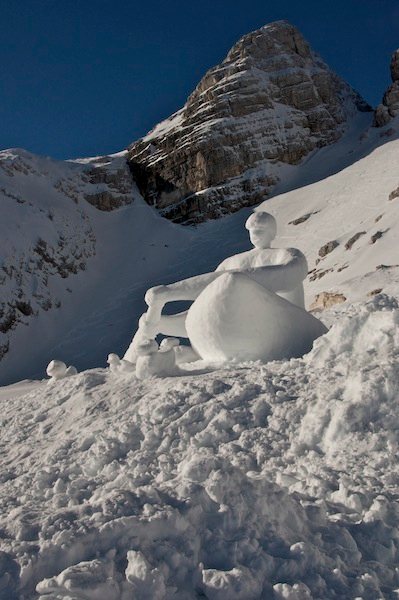 Divja smaragdna reka, ki jemlje dih v dolini, se v zimskem času odseva na najlepšem, najvišjem in najboljšem smučišču nad njo. Že tako mrzla Soča izhlapeva v oblake, te nam postrežejo s snegom kot osnovo za izražanje. Snežna skulptura bo predstavljala vodo v trdnem in tekočem stanju, ki se prepleta v objemu s kajakašem na brzici Soče, sinonim za Bovec.