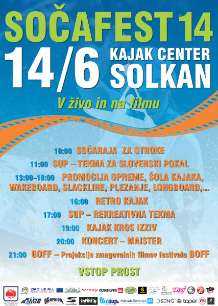 BOFF v soboto 14. junija z dvema filmoma z lanskega festivala gostuje na prireditvi Soča fest v Solkanu pri naših prijateljih iz kajak kluba Soške elektrarne. Takole predstavljajo svoj športni dan:
