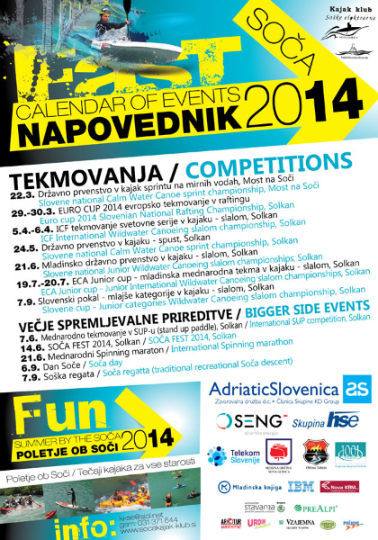 Kogar pa bo dajala lenoba, si bo lahko preko celega dneva ob srebanju osvežilnih pijač ogledal več tekmovanj v različnih disciplinah ali poslušal še ne uveljavljeno, a zelo zanimivo skupino Maister. Na koncu si bomo ogledali dva filma festivala BOFF: s prvim filmom Valhalla, v Bovcu zmagovalnim med daljšimi športnimi filmi, se bomo vrnili v zimo in vse njene radosti, z drugim, soteskarskim The Beginning, pa vam bomo prikazali, kaj se ob Soči še lahko počne.