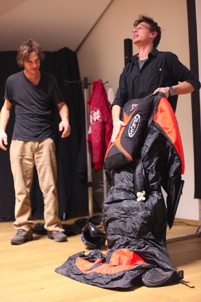 Edo also showed us a film by the Phoenix-fly team: The Need 4 Speed – Mountain Trails. There was some cheering and screaming in the audience, especially when the local spots were shown, especially in Soča Valley. Passing trees at 200 kph, flying through between the walls, in formations, “attacking” paragliders … Pure action with cool electro music.